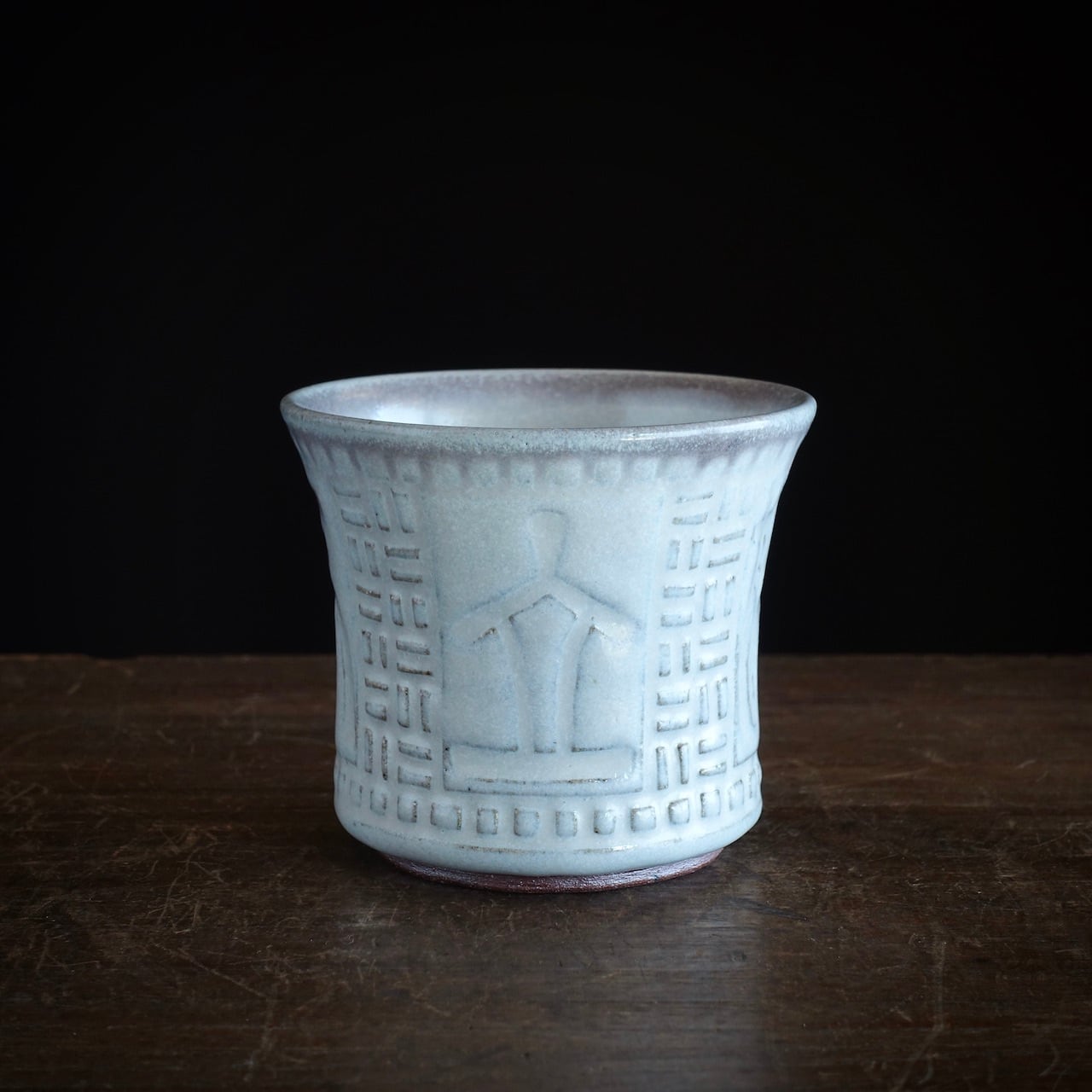藁灰釉 線刻文カップ「独立不羈」